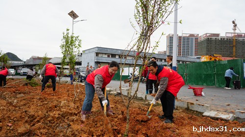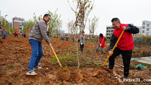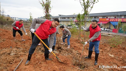 活动现场,党员们热情高涨。 大家分工协作,对土地进行平整美化, 清理杂草碎石,翻松土壤,挥锹铲土,扶苗填坑、培土,每一个环节都一丝不苟,现场呈现出一派热火朝天的劳动景象。经过一番辛勤劳动, 一棵棵新栽种的树苗迎风挺立,为校园增添了一抹新绿,也种下了春天的希望。